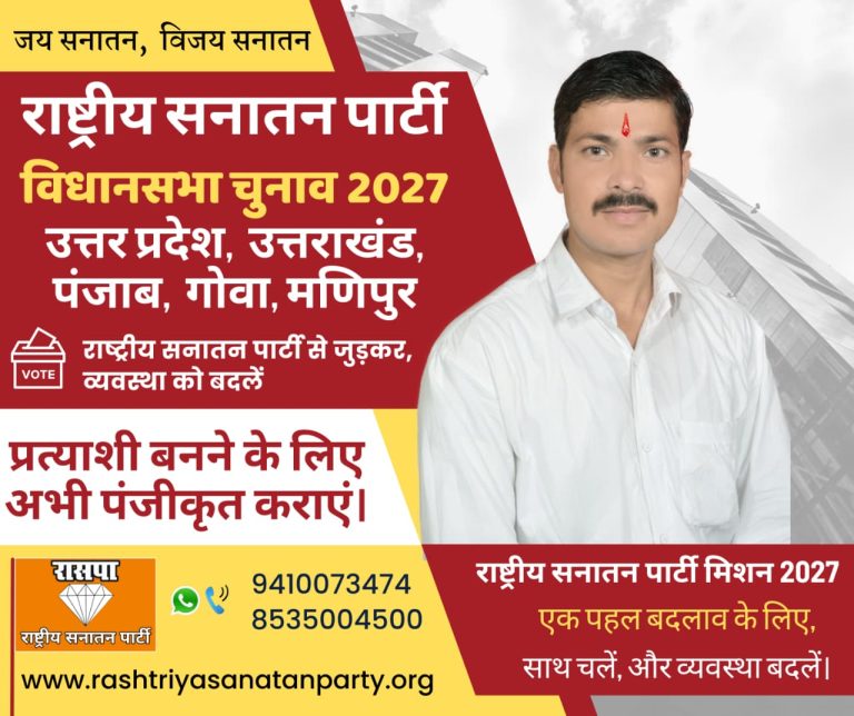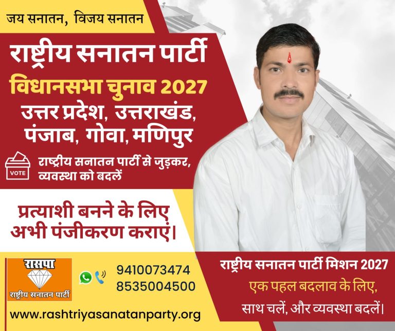राष्ट्रीय सनातन पार्टी लाएगी जवाबदेह, पारदर्शी और जनहितकारी राजनीति।